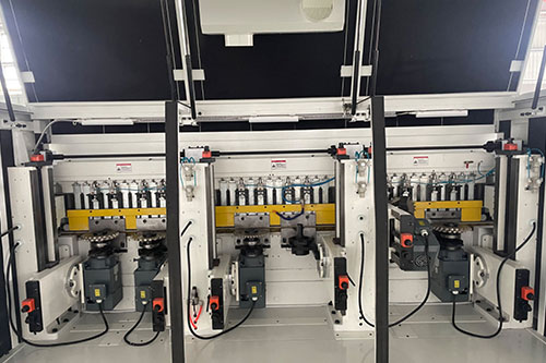 是用來加工地板長邊榫槽的,軸配:它一般分為6軸(實木)、8 軸(復(fù)合)10軸(鎖扣)。8 軸設(shè)備,前3軸均為水平軸,第4軸為立軸,根據(jù)廠家要求也可以將第3軸設(shè)計成既能水平又垂直使用的多用軸,一般是做為倒角使用,;10軸的前4軸基本同于8軸型,只是第5軸為傾斜軸,用來做鎖扣刀軸;刀具與鏈條的***小距離應(yīng)控制在(2mm)以上,以免損傷刀具及鏈條等。