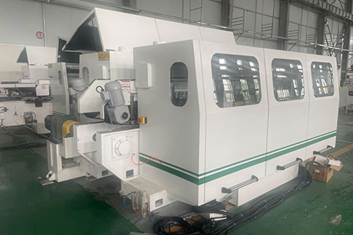 是用來加工地板的端頭榫槽的,他一般分為6軸(實木)8軸(復(fù)合)10軸、12軸(復(fù)合、鎖扣),除第1軸是跳刀軸與縱銑不同外,其余軸與縱銑略同,刀具與鏈條***小距離,以及上壓緊、輔助壓緊裝置也與縱銑相同。